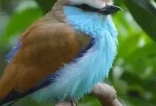 蓝胸佛法僧中型鸟类,体长31~33厘米,通体淡蓝绿色。翅膀长而宽,除栗色背羽外大部分为蓝色。额、眼先、耳羽淡褐色;头顶、颊、腰淡蓝绿色。背、肩、最内侧数枚飞羽沙棕色。翼覆羽绿蓝色,小,…全部>>