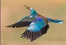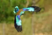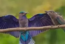三宝鸟,是佛法僧目佛法僧科三宝鸟属中小型攀禽。成鸟通体为富有光泽的墨蓝绿色,头大而头顶扁平;头部色深近紫黑色,上体至尾泛有铜绿光泽;两翼有幽蓝金属光,初级飞羽黑褐色;羽基淡石青色,形成大块淡蓝,…全部>>