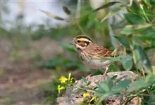 黄眉鹀是雀形目鹀科鹀属鸟类,体型中等偏小。雄鸟头部主要为黑色,冠纹白色,眉纹前段黄色而后段白色,喉白而具黑色细碎纵纹;上体主要为栗褐色,背具黑褐色纵纹;翼主要为黑褐色,…全部>>