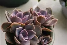 紫珍珠是景天科石莲花属的多年生肉质草本植物。植株中小型;叶片肉质,匙形,呈莲座状紧密排列;叶片粉紫色,叶缘呈粉白色,光照充足时颜色亮丽,不足时叶色会呈现深绿色或灰绿色,叶面光滑,被轻微白粉,…全部>>