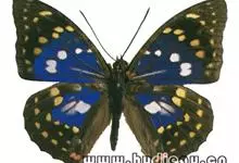 大紫蛱蝶为大型蝶种,翅展约86~110mm。翅紫黑色,有白色斑点点缀其中,雄蝶的翅具强烈紫色虹彩,其余部分暗褐色,后翅臀角具粉色斑。雌蝶体型较大,但是没有蓝紫金属光泽。原产于东亚的蝶类。…全部>>