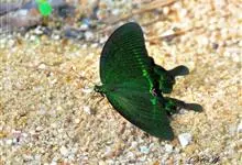 绿带翠凤蝶,又名深山凤蝶,为凤蝶科凤蝶属下的一种。分布于韩国、日本、中国台湾、中国大陆等地。翅黑色,满布金绿色鳞片。前翅亚缘具黄绿色横带纹。后翅外缘有6个略呈新月形的红斑,…全部>>