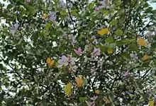 洋紫荆:落叶乔木;树皮暗褐色,近光滑;幼嫩部分常被灰色短柔毛;枝广展,硬而稍呈之字曲折,无毛。叶近革质,广卵形至近圆形,宽度常超过于长度,先端2裂达叶长的1/3,裂片阔,钝头或圆,两面无毛或下面略被…全部>>