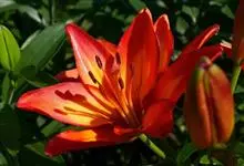 青岛百合是百合科百合属的多年生草本植物;鳞茎近球形;鳞片披针形,白色,无节;叶轮生,矩圆状倒披针形、倒披针形至椭圆形,先端急尖,基部宽楔形,具短柄,两面无毛;苞片叶状,披针形;花橙黄色或橙红色,…全部>>