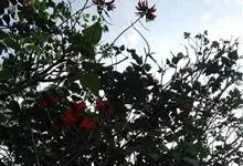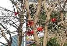 刺桐,是豆科刺桐属乔木植物。树皮灰褐色;分枝有圆锥形黑色皮刺;叶柄无毛,无刺;花密集,成对着生;花梗被茸毛,花冠红色;果实为圆柱形,微弯曲;花期3月;果期8月。刺桐因枝干间有圆锥形棘刺,故名。…全部>>