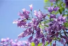 蓝花楹是紫葳科蓝花楹属的落叶乔木,叶对生,小叶椭圆状披针形至椭圆状菱形,顶端急尖,基部楔形;花蓝色,花萼筒状,花冠筒细长,蓝色,裂片圆形;朔果木质,扁卵圆形;花期5-6月。原产于南美洲巴西,…全部>>