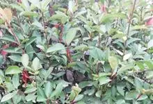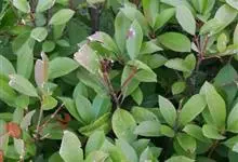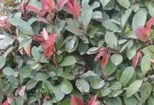 红叶石楠 是蔷薇科,石楠属杂交种,为常绿小乔木或灌木,乔木高可达5米、灌木高可达2米。叶片革质,长圆形至倒卵状、披针形,叶端渐尖,叶基楔形,叶缘有带腺的锯齿,花多而密,复伞房花序,花白色,梨果黄红色,…全部>>