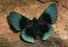 光明女神闪蝶:是鳞翅目、闪蝶科、闪蝶属的昆虫。前足相当退化,短小无爪。前翅R脉5条,常共柄。卵半圆球形。幼虫头上有突起,体节上有枝刺,腹足趾钩1至3序中列式。蛹为垂蛹。雄闪蝶的翅面有绚丽的金属般光泽,…全部>>