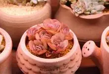 玉蝶 E.Morren)是景天科石莲花属多年生肉质草本植物,植株高可达60厘米。叶片互生,肉质,倒卵匙形,叶稍直立,先端圆且有小尖,微微向内弯曲,叶片淡绿色;单歧聚伞花序腋生,小花为钟形,赭红色,…全部>>
