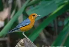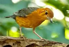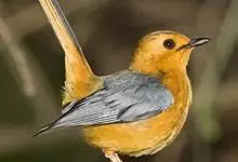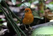 橙头地鸫是鸫科、地鸫属中型鸟类,体长18-22厘米。整个头、颈和下体橙栗色,其余上体包括两翅和尾蓝灰色或橄榄灰色,翅上多具白色翅斑。虹膜褐色或棕褐色,嘴黑褐色或黑色,脚橙黄色或肉黄色。特征极明显。…全部>>