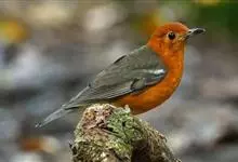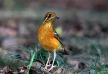 橙头地鸫是鸫科、地鸫属中型鸟类,体长18-22厘米。整个头、颈和下体橙栗色,其余上体包括两翅和尾蓝灰色或橄榄灰色,翅上多具白色翅斑。虹膜褐色或棕褐色,嘴黑褐色或黑色,脚橙黄色或肉黄色。特征极明显。…全部>>