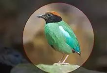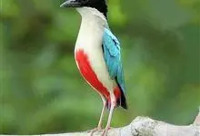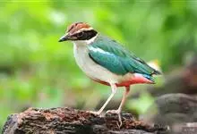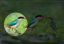 绿胸八色鸫:是雀形目八色鸫科的鸟类,共有12个亚种。体长为16-18厘米,体重65-69克。体型圆胖,尾短,腿长。头黑,上体绿色,两翼深色而具白色斑纹,头顶至后枕深褐,胸及腹部苹果绿,臀亮红。…全部>>