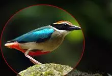 蓝翅八色鸫是雀形目八色鸫科的鸟类。体长17-20厘米,体重类约48-70克,体型圆胖,尾短,腿长,以身体具有红、绿、蓝、白、黑、黄、褐、栗等鲜艳夺目,丰富艳丽的色彩而得名,是很有观赏价值的鸟类。主要…全部>>