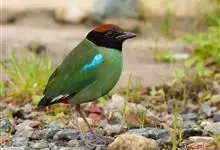 栗头八色鸫又叫锅巴雀,体长为24-26厘米,体重100-135克,是雀形目八色鸫科的鸟类。体型圆胖,尾短,腿长,常在森林底层或低植被中找食无脊椎动物。叫声简单哀婉。…全部>>