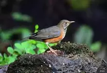 赤胸鸫是鸫科、鸫属中型鸟类,体长22-24厘米。整个头、颈和喉暗橄榄褐色或灰褐色,上体橄榄褐色。胸和两胁橙红色,腹以下白色。下嘴黄色,脚橙黄色具黄色眼圈。虹膜褐色,上嘴褐色,下嘴黄色,脚黄色。…全部>>