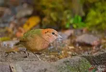 栗头八色鸫又叫锅巴雀,体长为24-26厘米,体重100-135克,是雀形目八色鸫科的鸟类。体型圆胖,尾短,腿长,常在森林底层或低植被中找食无脊椎动物。叫声简单哀婉。…全部>>