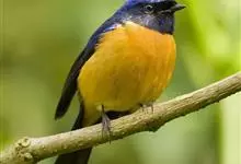 棕腹蓝仙鹟,Niltava vivida,鹟科仙鹟属的一种小型鸣禽,善在空中飞捕昆虫,中等体型18厘米,上体蓝,下体棕色,具黑色眼罩,胸橘黄渐变成臀部的皮黄色。国内分布于四川、云南、西藏和台湾等地。…全部>>