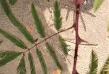 巴西含羞草是豆科、含羞草属植物。直立、亚灌木状草本;茎攀援或平卧,长达60厘米,五棱柱状。复叶长10-15厘米;总叶柄及叶轴有钩刺;羽片长2-4厘米;小叶线状长圆形,被白色长柔毛。花紫红色,花萼极小…全部>>