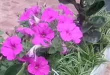 碧冬茄是茄科矮牵牛属一年生草本植物,是杂交种。植株高达60厘米;茎在地面匍匐生长,表面有一层粘质柔毛;叶卵形,先端渐尖,具有较短的叶柄或几乎没有叶柄;花单独生长于叶柄与茎的连接处;花冠白色或紫堇色,…全部>>