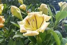 金杯藤 P.S. Green)是茄科、金杯藤属多年生常绿大型藤本。茎及枝条粗壮。叶片互生。长椭圆形。先端突尖。叶面有光泽。全株具有毒乳汁。花顶生,单朵或数朵,花苞棒槌状。从绿色转变为淡黄色。…全部>>