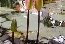 睡莲是睡莲科睡莲属植物统称。多年生浮叶型水生草本植物,根状茎肥厚,直立或匍匐。叶二型,浮水叶浮生于水面,基部深裂成马蹄形或心脏形,叶缘波状全缘或有齿;沉水叶薄膜质,柔弱。花单生,花有大小与颜色之分,…全部>>