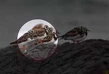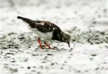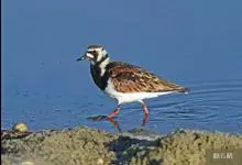 翻石鹬:体重82-135克,体长180-240毫米。体型高矮兼称,看起来十分的滑稽。它们在繁殖季时体色非常醒目,由栗色、白色和黑色交杂而成,嘴短,黑色,脚橙红色。到了冬天,翻石鹬身上的栗红色就会消失,…全部>>