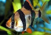 虎皮鱼又名四间鱼、品品鱼等。隶属鲤形目鲤科,热带淡水鱼类。其体高,侧扁略呈卵圆形。体呈浅黄色,背部为金黄色,背鳍、腹鳍、尾鳍和吻部均为鲜红。鱼体上有四条黑色粗带状竖纹,第一条竖纹通过眼部,…全部>>