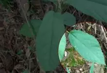 尾尖爬藤榕,攀援灌木,小枝具稀疏柔毛。叶厚纸质,披针形或卵状披针形,干时常皱折,顶端具尾状渐尖,基部宽楔形,叶背网脉明显,蜂窝状。全部>>