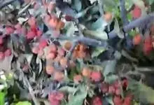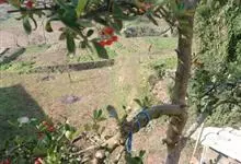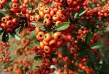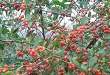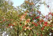 火棘 H. L. Li)是蔷薇科火棘属常绿灌木,老枝呈暗褐色;叶片呈倒卵形,边缘有钝锯齿,齿尖向内弯,两面皆无毛;叶柄短,无毛或嫩时有柔毛;花序是复伞房状,花瓣呈白色近圆形;果球近圆形,…全部>>