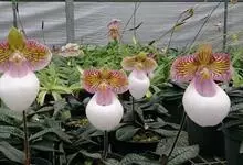 兜兰是兰科兜兰属的多年生草本植物。根茎粗状,直径3~4毫米,有很多须根;叶基生,叶片肉质增厚,排成紧密2列,叶片呈长圆形,表面有极短柔毛;总状花序,粉白色,花葶直立或倾斜,深绿色或褐色,花瓣大,呈唇形,…全部>>