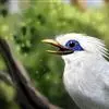长冠八哥:是一种大型椋鸟,体长约25厘米,雌雄相似,外形俊朗,羽冠发达,眼睛四周和面部裸出,裸露部分为蓝色,全身羽毛纯白色,尾部和翼端的边缘呈黑色,脚灰色。全身白色,具较长冠羽,…全部>>