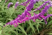 墨西哥鼠尾草,是唇形科鼠尾草属一年生或多年生草本植物。墨西哥鼠尾草茎直立多分枝,基部稍木质化,全株被柔毛;叶披针形,叶面皱,先端渐尖,具柄,边缘具浅齿;穗状花序,花紫红色;花期秋季,果期冬季。…全部>>
