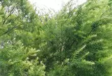 黄金串钱柳是桃金娘科白千层属常绿乔木植物。其树干暗灰色,树皮不易剥落;具油腺点,香味浓郁;叶革质互生,披针形或狭长圆形,两端尖;叶色全年金黄至鹅黄色;枝条细长,柔软且韧性好;穗状花序生于枝顶;花白色,…全部>>