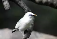 长冠八哥:是一种大型椋鸟,体长约25厘米,雌雄相似,外形俊朗,羽冠发达,眼睛四周和面部裸出,裸露部分为蓝色,全身羽毛纯白色,尾部和翼端的边缘呈黑色,脚灰色。全身白色,具较长冠羽,…全部>>
