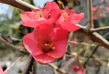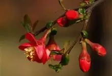 贴梗海棠 Nakai)是蔷薇科、木瓜海棠属植物。落叶灌木,高达2米,枝条直立开展,有刺。叶片卵形至椭圆形,稀长椭圆形,长3-9厘米,宽1.5-5厘米。花先叶开放,3-5朵簇生于二年生老枝上。…全部>>