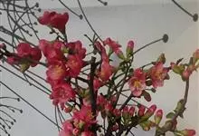 贴梗海棠Nakai)是蔷薇科、木瓜海棠属植物。落叶灌木,高达2米,枝条直立开展,有刺。叶片卵形至椭圆形,稀长椭圆形,长3-9厘米,宽1.5-5厘米。花先叶开放,3-5朵簇生于二年生老枝上。…全部>>