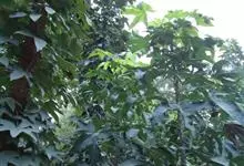 刺楸 Koidz.),五加科刺楸属落叶乔木,高30米。树干通直;树皮纵裂灰黑褐色;叶掌状分裂长圆状卵形;伞形花序,花较小白色或淡黄绿色;果蓝黑色;花期7-8月,果期9-11月。变种有深裂叶刺楸,…全部>>