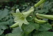 荞麦叶大百合 Stearn)是百合科大百合属的多年生草本植物,叶纸质,具网状脉,卵状心形或卵形,先端急尖,基部近心,上面深绿色,下面淡绿色;花梗短而粗,向上斜伸,每花具一枚苞片;苞片矩圆形;花狭喇叭形,…全部>>