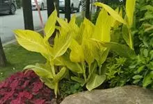 金脉美人蕉叶片淡黄色,叶脉绿化,叶缘具红边,全缘,大花美人蕉之变种全部>>