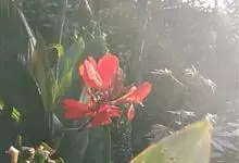 美人蕉,属美人蕉科美人蕉属的多年生草本植物。全株绿色没有毛,被蜡质白粉;根为具块状;地上的枝丛生,叶片为卵状长圆形;花单生或对生;萼片为绿白色,先端带红色;花冠为红色,…全部>>