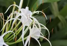 文殊兰 Baker)是石蒜科文殊兰属的多年生粗壮草本。鳞茎长圆柱形;叶深绿色,线状披针形,边缘波状,先端渐尖具尖头;花茎直立,与叶近等长;总苞片披针形;小包片线形;雄蕊淡红色,花药线形,…全部>>