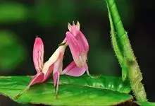 兰花螳螂:是昆虫纲、花螳科的动物。有着较为极端的性二态,成年雌性大约6-7厘米长,而雄性只有大约2.5厘米。和雌性比起来,雄性极为矮小,雄性和雌性也有不同的外观,它们的步肢演化出类似花瓣的构造和颜色…全部>>