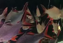 银鲨别名黑鳍袋唇鱼,是鲤科袋唇鱼属鱼类。其成鱼体长约30厘米,身体呈流线型,背鳍、尾鳍大而尖锐。全身呈光亮的银白色,腹部颜色较淡,各鳍黄色且带有黑边,黑边内侧为淡灰色宽带,十分醒目。…全部>>