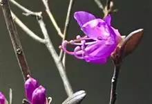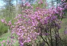 兴安杜鹃是杜鹃花科、杜鹃花属半常绿灌木,高可达2米,分枝多。叶片近革质,椭圆形或长圆形,花序腋生枝顶或假顶生,花粉红色或紫红色,花药、花柱紫红色,蒴果长圆形,5-6月开花,7月结果。…全部>>