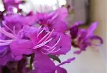 兴安杜鹃是杜鹃花科、杜鹃花属半常绿灌木,高可达2米,分枝多。叶片近革质,椭圆形或长圆形,花序腋生枝顶或假顶生,花粉红色或紫红色,花药、花柱紫红色,蒴果长圆形,5-6月开花,7月结果。…全部>>