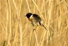 黑喉石鵖,雀形目鹟科石鵖属小型鸣禽,俗名谷尾鸟、黑喉石。其体色为黑褐色。雄鸟头部、背部、两翼及尾黑色,颈侧及翼上具白斑,胸部和腹侧红棕色,腰及尾下覆羽白色。雌鸟体色为褐色,上体具深色纵纹,胸部染棕色,…全部>>