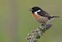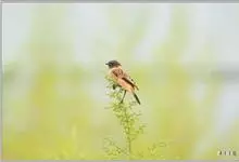 黑喉石鵖,雀形目鹟科石鵖属小型鸣禽,俗名谷尾鸟、黑喉石。其体色为黑褐色。雄鸟头部、背部、两翼及尾黑色,颈侧及翼上具白斑,胸部和腹侧红棕色,腰及尾下覆羽白色。雌鸟体色为褐色,上体具深色纵纹,胸部染棕色,…全部>>