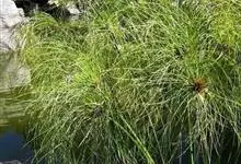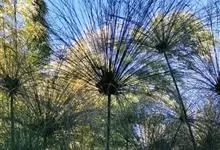 纸莎草是莎草科、莎草属的植物,具有粗壮的根状茎,高达2-3米,茎秆簇生,粗壮,直立,钝三棱形。叶退化呈鞘状,茎秆顶端着生总苞片,呈伞状簇生,总苞片叶状,披针形,顶生花序伞梗极多,细长下垂。瘦果灰褐色,…全部>>