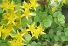佛甲草,又名狗豆芽、珠芽佛甲草、指甲草,是景天科景天属的多年生草本植物。佛甲草全株无毛,3叶轮生,稀4叶轮生或对生,叶线形。花序聚伞状,中央有一朵有短梗的花。蓇葖果略叉开,种子小。花期4-5月,…全部>>
