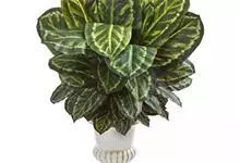花叶竹芋:竹芋科,竹芋属匍匐状分枝草本植物,植株矮小,高可达40厘米,叶片长圆形、椭圆形至卵形,基部圆或心形,边缘多少波浪形,叶面粉绿色,总状花序单生,苞片内有对花,花冠白色,裂片披针形,夏、秋开花。全部>>